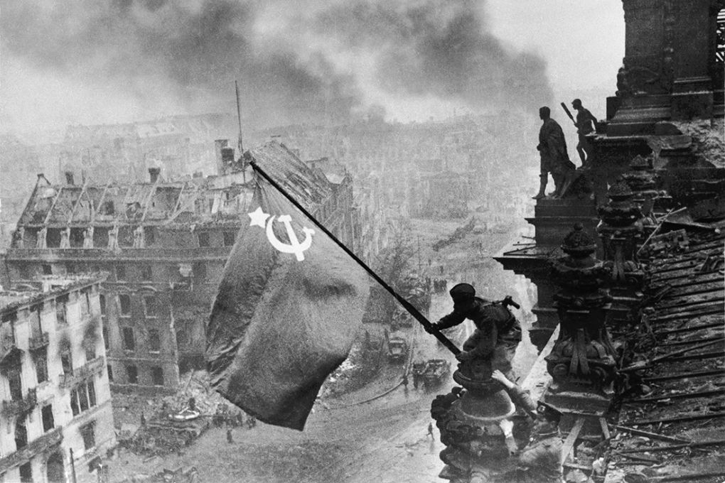 Je reviens sur cette photo, ce symbole du drapeau soviétique hissé sur le Reichstag : quelle histoire qui trafique l’Histoire!