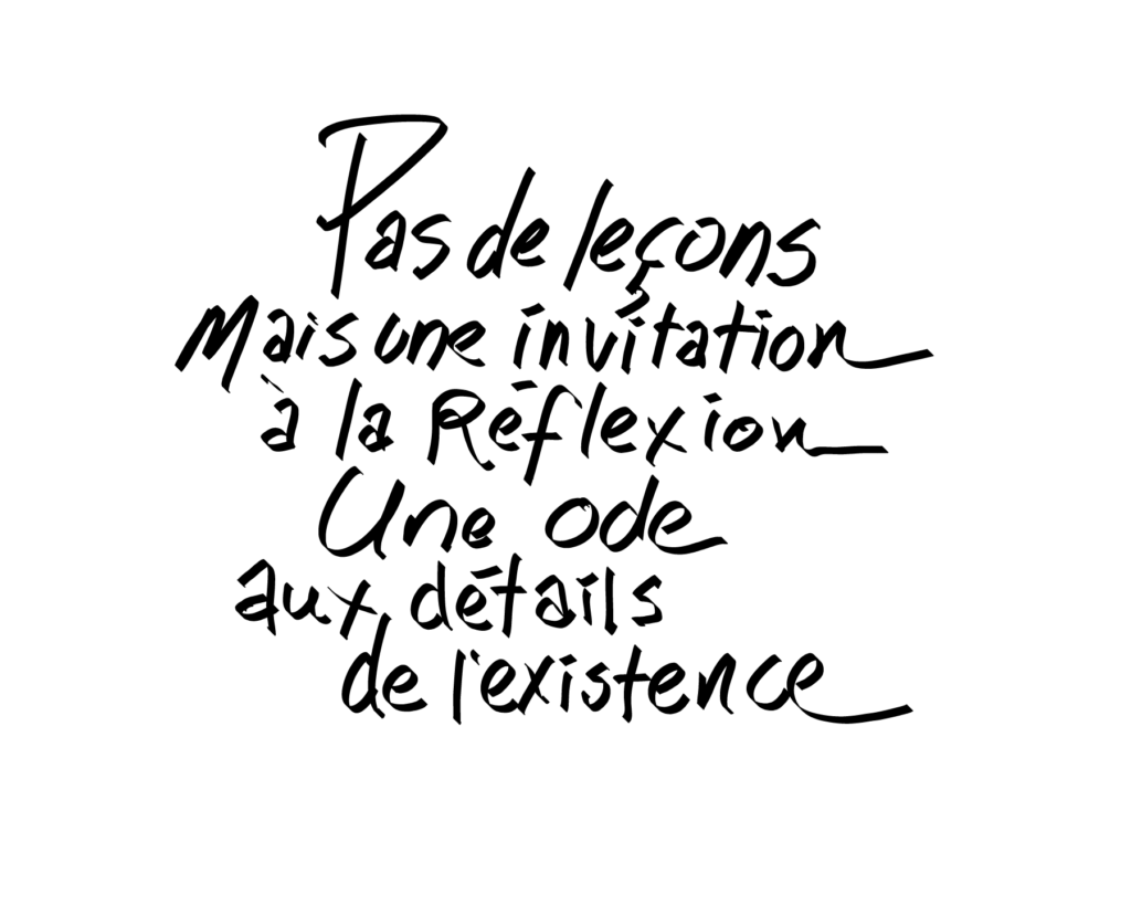 C’est le jeu de serpents et échelles dans les dédales de parenthèses d’explication dans des parenthèses d’explication dans des parenthèses d’explication qui aboutissent à former un panorama de compréhension fine, aiguë, lancinante de la réalité (ce mot qui n’est qu’un mot fourre-tout finalement, un leurre pour tromper la curiosité, une façade pour simplifier, comme Dieu dit tout et dit rien). Ce qui compte, c’est prendre le temps de passer par quatre chemins pour voir le paysage, goûter les couleurs, sentir les sons, s’émerveiller devant ce spectacle à nul autre pareil. Le but n’est pas d’arriver quelque part, mais d’être là où on est, où il est, lui, et où il nous invite à le rejoindre, c’est-à-dire à notre niveau individuel des choses, voilà ce qui compte. Voilà, l’important. Voilà qui fait la différence entre vivre et exister.